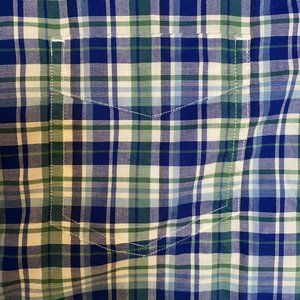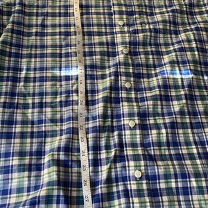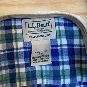 LL Bean Shirt Mens Large Tall Short Sleeve Button Down Blue & Green