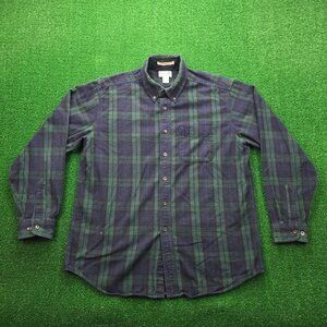 LL Bean Shirt Mens Large/XL Blue Green Plaid Button Down Long Sleeve Traditional