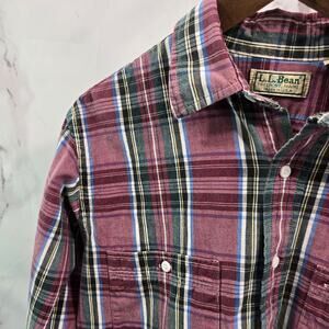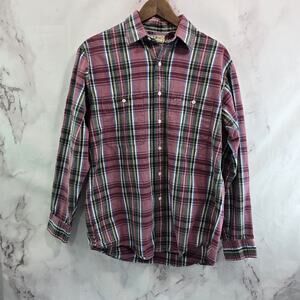 LL Bean Shirt Mens Medium Red Green Plaid Button Up Vintage 90s Long Sleeve