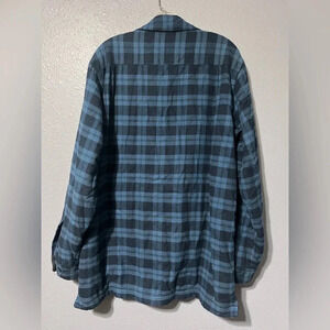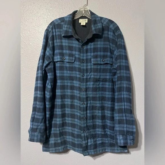 LL Bean Shirt Men's Medium TALL Fleece Lined Shacket Flannel Plaid 252749 Blue.