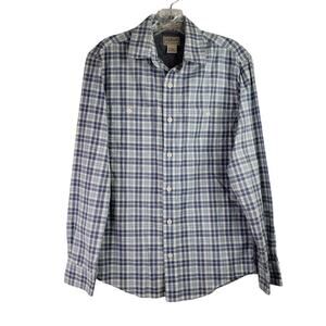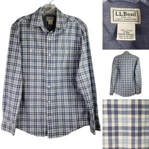 LL Bean Shirt Men's Small Blue Plaid Cotton Outdoor Camping Lined Cabin Hike