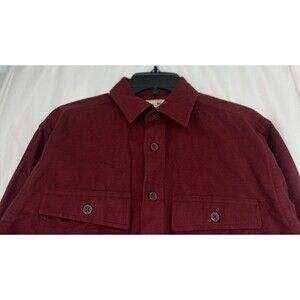 LL Bean Shirt Mens Small Red Regular Button Up Chamois Flannel Shacket Popover