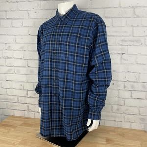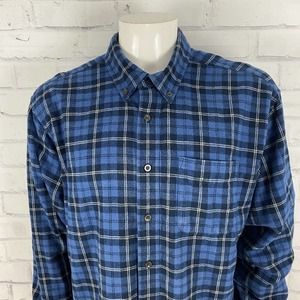 LL Bean Shirt Men's XL Flannel Blue Plaid Long Sleeve Button Up (no tag)