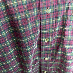 LL. Bean Shirt Men's XL Tall Red/Burgundy Plaid Long Sleeve Wrinkle Resistant Co