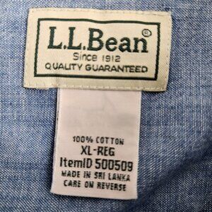 LL Bean Shirt Mens XL-Reg Blue Comfort Stretch Chambray S/S Button Up 500509