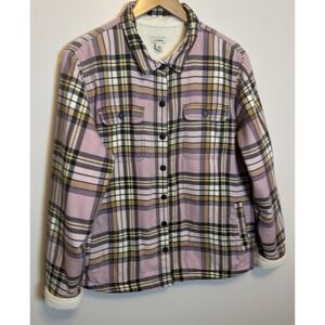 LL Bean Shirt Plaid Flannel Fleece Lined Blue/Pink Button Outdoor Large Women