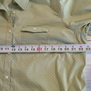 LL Bean polka dot shirt with roll-tab long sleeves and button pockets. Classic relaxed fit for a stylish look.