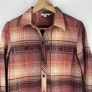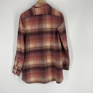 LL Bean Shirt Small Womens Pink Plaid Signature Chamois Flannel Tunic Shacket