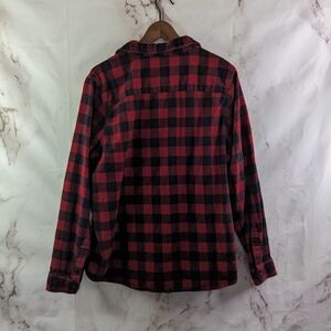 LL Bean Shirt Womens Large Red Black Buffalo Plaid Button Up Flannel Scotch
