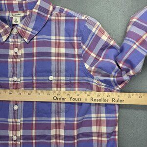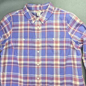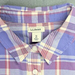 LL Bean Shirt Womens Medium Purple Pink Plaid Long Sleeve Cotton Classic Preppy