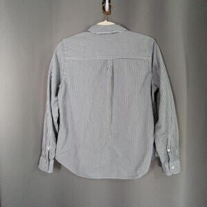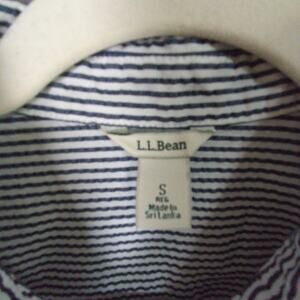 LL Bean Shirt Womens S Black White Stripe Seersucker Button Up