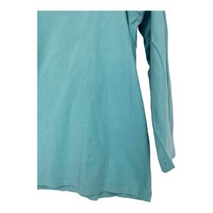 Introducing a stylish and comfy LL Bean women's shirt in size 1X. This mint green shirt is made of supima cotton and features a V-neckline, long sleeves, and a solid pattern. The shirt is perfect for casual occasions and can be worn in all seasons.