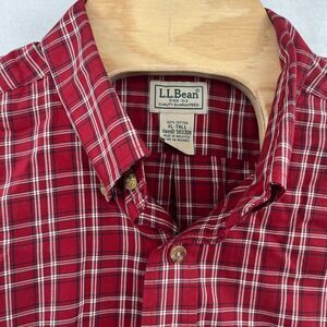 L.L. Bean Shirt XL Tall Button Down Cotton Outdoor Casual Red Plaid Long Sleeve