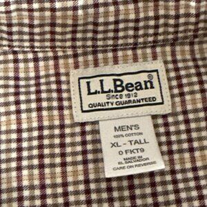 LL Bean Shirt XL Tall XLT Maroon Check Long Sleeve Button Down Cotton Pocket