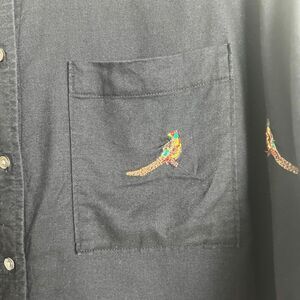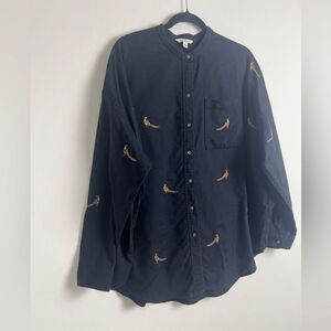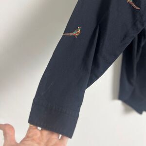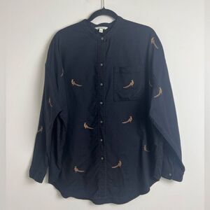 L.L. Bean Signature Black Pheasant Embroidered Novelty Print Button Down Blouse Top