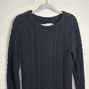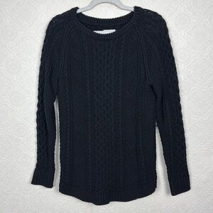 LL Bean Signature 100% Cotton Cable Knit Sweater XS Black Crew Scoop Neck fisherman classic timeless Nordic Maine