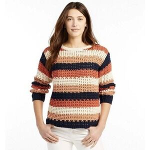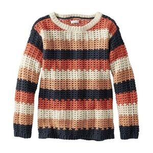 L.L. Bean Signature Bailey Island Cotton Fisherman Sweater Cream Crochet Lady XS