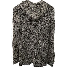 L.L. Bean Signature Blue and White Combed Cotton Hooded Full Zip Sweater S
