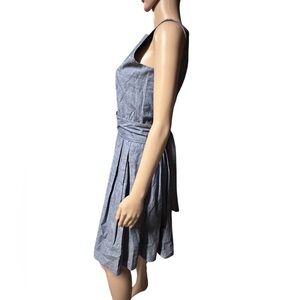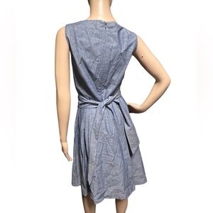L.L. Bean Signature Chambray Poplin A-Line Belted Cotton Retro Dress Women Sz 4