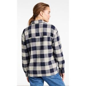 LL Bean Signature Women's Chamois Shirt-Jacket Shacket Navy White Plaid sz. L