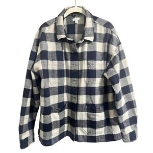 L.L. Bean Signature Chamois Shirt-Jacket Shacket Navy White Plaid Womens L