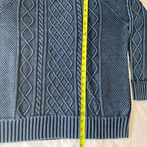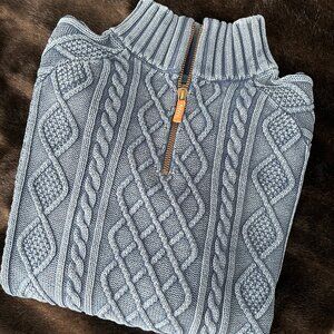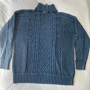 LL Bean Signature Chunky Quarter Zip Cable Sweater Blue XL