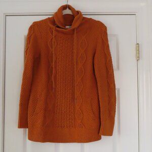 LL Bean Signature Cotton Funnelneck Sweater Saddle Drawstring Small Fishermans