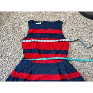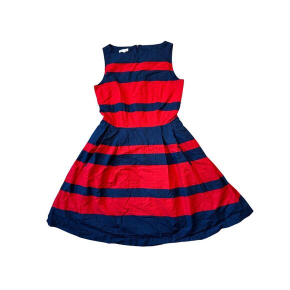 L.L. Bean Signature Dress, size 2 Petite, Sleeveless, Red & Blue wide striped pattern. Fully lined with back zipper. Crisp Cotton Dress. Fit N Flare Styling