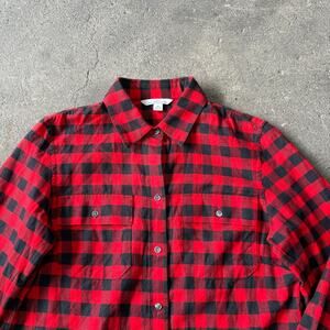L.L. Bean Signature Flannel Shirt Womens M Red Plaid Button Up Long Sleeve