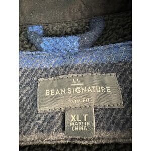 LL Bean Signature Jacket Mens XL Tall Blue Gray Plaid Wool Sherpa Lined Shacket
