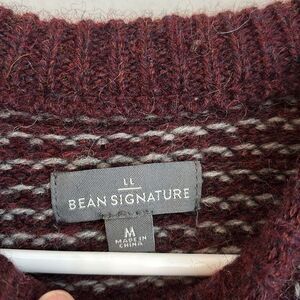 L.L. Bean Signature Men's Unisex 100% wool pullover Burgundy knit Sweater medium EUC!