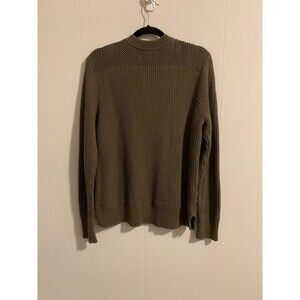 LL Bean Signature Mens Size Medium Fisherman Button Henley Sweater Green Ribbed