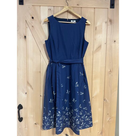 L.L. Bean Signature | Navy Belted Duck Print Cotton Tank Dress | Size 14