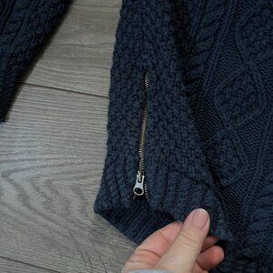 LL Bean Signature Navy Blue Cableknit Crewneck Pullover Zipper Detail Size Med