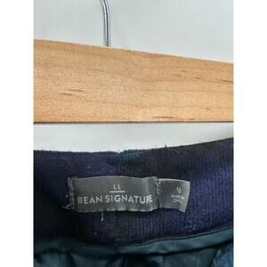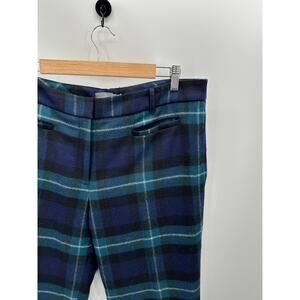 LL Bean Signature Pants Women 16 Blue Green Plaid Wool Trousers Preppy Clue