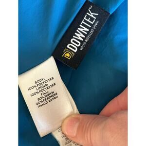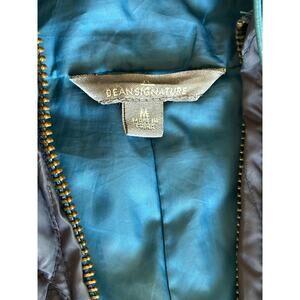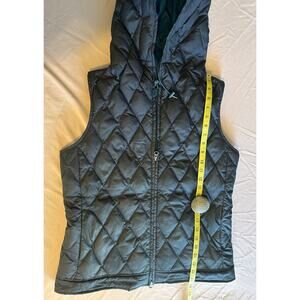 LL Bean Signature Quilted Down Puffer Vest Womens M Hooded blue Layer Outdoors camping hiking outerwear winter fall