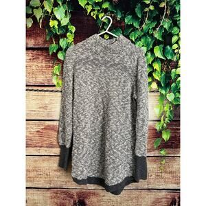 LL Bean Signature Sweater Dress Cotton Linen Cable Knit Mock Neck Gray White