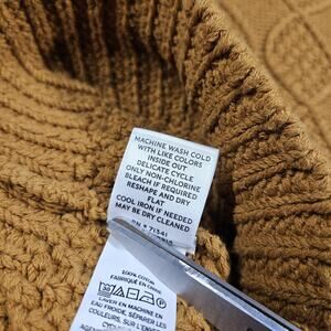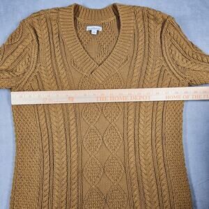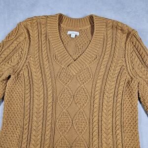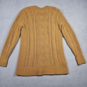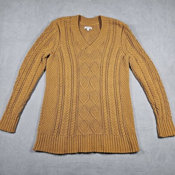 LL Bean Signature Sweater Womens Small Cable Knit Fisherman Tunic V-Neck Mustard