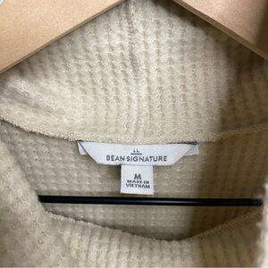 LL Bean Signature Waffle Knit Sweater Women Large cream beige Side Zip Mock Neck
