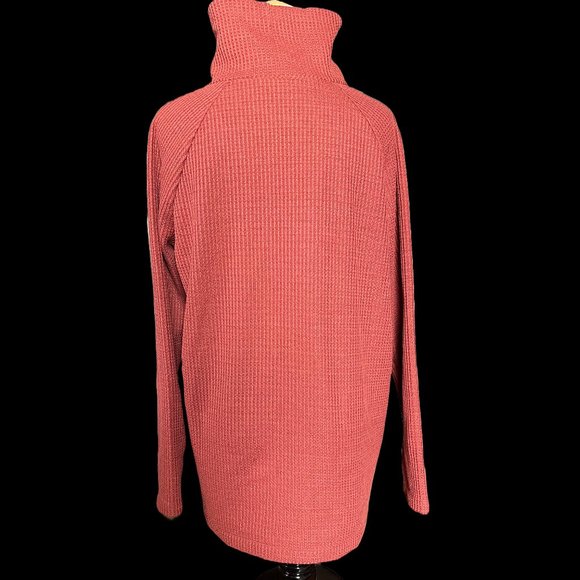 Like new L.L. Bean Signature coral waffle weave cowl neck sweater. Asymmetrical zips down each front side. 96% Polyester.