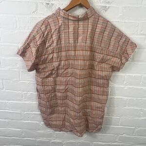 L.L. Bean Signature Women’s Plaid Buttons Down Shirt Short Sleeve Size Large