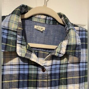 L.L. Bean Size 1X White Blue Plaid Cotton Stretch Flannel Button Down Shirt