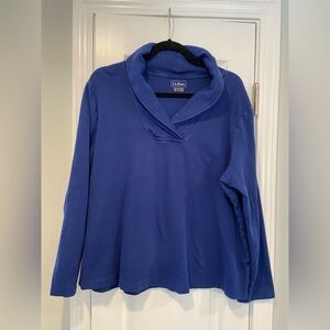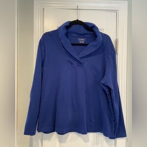 L.L. Bean Size 2X Royal Blue Long Sleeve Cowl V Neck Pullover Soft Cotton Shirt
