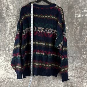 LL Bean Size L Fair Isle Nordic Scandinavian Geometric Knit Sweater Colorful