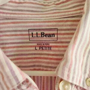 L.L. Bean Size L Petite Striped Collared Button Blouse Shirt Pink Purple