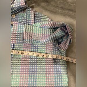 L.L. Bean Size LP Pastel Plaid Long Sleeve Button Down Seersucker Cotton Shirt