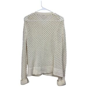 LL Bean Size Large Ivory Open Knit Cardigan Sweater Wool Angora Textured