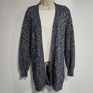 LL Bean Size M Navy Open Front Cotton Ragg Chunky Knit Cardigan Sweater 503637