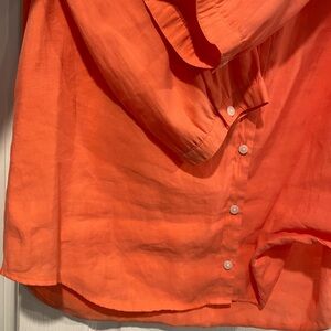 L.L. Bean Size M Orange Coral Pleated Shoulder 3/4 Sleeve V Neck Button Blouse