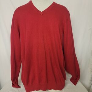 LL Bean Size XL Cotton Cashmere Red V-Neck Sweater Unisex Regular 274603